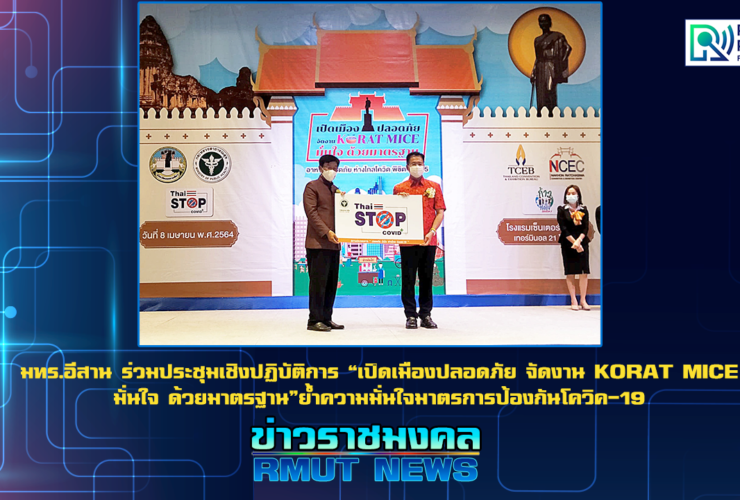 เมื่อวันที่ 8 เมษายน 2564 ผู้ช่วยศาสตราจารย์ณรงค์ ผลวงษ์ รองอธิการบดีฝ่ายบริหารและพัฒนาทรัพยากรมนุษย์ มหาวิทยาลัยเทคโนโลยีราชมงคลอีสาน เข้าร่วมการประชุมเชิงปฏิบัติการ “เปิดเมืองปลอดภัย จัดงาน KORAT MICE มั่นใจ ด้วยมาตรฐาน” จัดโดย ศูนย์อนามัยที่ 9 นครราชสีมา ร่วมกับ จังหวัดนครราชสีมา และสำนักงานสาธารณสุขจังหวัดนครราชสีมา โดยมีวัตถุประสงค์เพื่อส่งเสริมการขับเคลื่อนโคราชสู่การเป็นเมืองไมซ์ซิตี้และเกิดความมั่นใจ ยกระดับสถานประกอบการหรือพื้นที่ของแต่ละสถานประกอบการ ให้ได้มาตรฐานความปลอดภัยตามมาตรฐานสถานที่จัดงานประเทศไทย (TMVS) มาตรฐานความปลอดภัยด้านสุขอนามัย (SHA) และ มาตรฐาน Thai Stop COVID Plus เพื่อเตรียมพร้อมเปิดเมืองต้อนรับการจัดงานอย่างยิ่งใหญ่ในจังหวัดนครราชสีมา พร้อมกันนี้ ผู้ช่วยศาสตราจารย์ณรงค์ ผลวงษ์ ยังเข้ารับมอบป้าย THAI ...