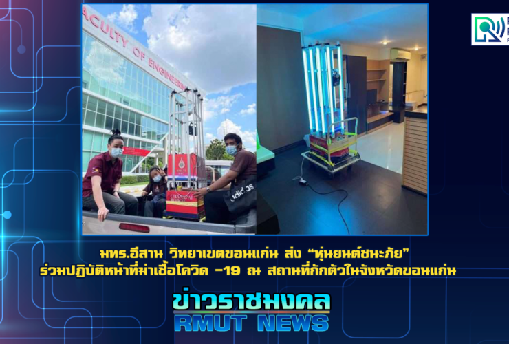 สืบเนื่องมาจากสถานการณ์การแพร่ระบาดของโรคติดเชื้อไวรัสโคโรนา 2019 (COVID-19) เมื่อช่วงต้นเดือน เมษายน 2564 มทร.อีสาน วิทยาเขตขอนแก่น ได้รับการประสานงานจากสถานประกอบการ โรงแรมลาวิลล่า ซึ่งจัดให้เป็นสถานที่กักตัวสำหรับบุคลากรทางการแพทย์และกลุ่มเสี่ยง จำนวน 38 คน จนกระทั่งและได้กลับไปปฏิบัติหน้าที่ ณ โรงพยาบาลต้นสังกัดในจังหวัดขอนแก่น เมื่อวันที่ 17 เมษายน 2564 ที่ผ่านมา . จากการประสานงานดังกล่าว อาจารย์อภิศักดิ์ หาญพิชาญชัย อาจารย์ประจำสาขาวิชาวิศวกรรมอุตสาหการ คณะวิศวกรรมศาสตร์ มทร.อีสาน วิทยาเขตขอนแก่น จึงได้ให้การช่วยเหลือโดยการมอบหมายให้นักศึกษานำผลงานซึ่งเป็นนวัตกรรมของนักศึกษาที่ประดิษฐ์ในการเรียน เรื่อง รถขนส่งอุปกรณ์ระบบอัตโนมัติภายในโรงฝึกงาน เข้าช่วยเหลืองานด้านความสะอาดในสถานที่กักตัว โดยได้นำหุ่นยนต์ดังกล่าวมาติดตั้งบนรถเข็นเพื่อช่วยเหลือและสนับสนุนการทำความสะอาดของแม่บ้านประจำสถานที่กักตัว โดยจะสามารถเคลื่อนย้ายไปทำความสะอาดยังห้องต่างๆ ได้อย่างสะดวกขึ้น โดยหุ่นยนต์ชนะภัย จะใช้แสง UV-C ...