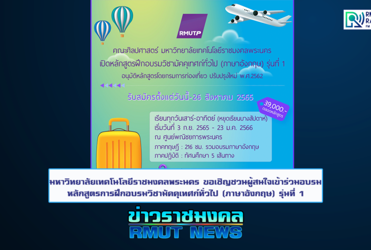 มทร.พระนคร ขอเชิญชวนผู้สนใจเข้าร่วมอบรมหลักสูตรการฝึกอบรมวิชามัคคุเทศก์ทั่วไป (ภาษาอังกฤษ) รุ่นที่ 1