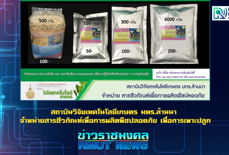 สถาบันวิจัยเทคโนโลยีเกษตร มทร.ล้านนา เปิดจำหน่ายสารชีวภัณฑ์ แก่เกษตรกรและบุคคลที่สนใจทั่วไป โดยได้ผลิต “สารชีวภัณฑ์สามารถนำมาควบคุมศัตรูพืชทดแทนสารเคมี” เพื่อยกระดับผลผลิตทางการเกษตรให้มีคุณภาพและมีความปลอดภัยเป็นไปตามความต้องการของตลาด พัฒนาเชื้อรากำจัดแมลง บิวเวอร์เรีย และ เมตาไรเซียม ควบคุมแมลง เชื้อราปฏิปักษ์ไตรโคเดอร์มา ควบคุมโรคพืช รวมถึงพัฒนาบรรจุภัณฑ์ให้อยู่ในรูปแบบพร้อมใช้ เพื่อให้เหมาะสมกับพืช แมลงศัตรูพืช โรคพืช ที่แตกต่างกัน นอกจากนั้น ยังมีผลิตภัณฑ์ที่เป็นหัวเชื้อที่ สามารถนำไปผลิตขยายได้เอง ทั้งแบบหัวเชื้อสด และผง . สถาบันวิจัยเทคโนโลยีเกษตร มหาวิทยาลัยเทคโนโลยีราชมงคลล้านนา เป็นศูนย์ความเป็นเลิศทางการวิจัยและวิชาการด้านเทคโนโลยีการผลิตพืช และพัฒนาบุคลากรทางการเกษตร ของมหาวิทยาลัยเทคโนโลยีราชมงคลล้านนา ดำเนินการวิจัยพัฒนา องค์ความรู้ เทคโนโลยีการผลิตพืช พันธุ์พืช และผลิตภัณฑ์อาหารปลอดภัยโดยบูรณาการศาสตร์ต่างๆ เพื่อพัฒนาศักยภาพธุรกิจเกษตร ผู้ที่สนใจสามารถสั่งซื้อหรือสอบถามเพิ่มเติมได้ที่ สถาบันวิจัยเทคโนโลยีเกษตร มทร.ล้านนา 08 ...