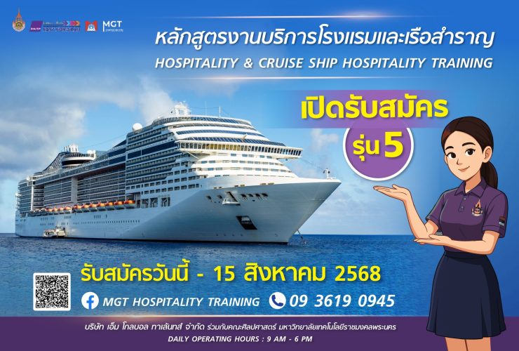 ผศ.ดร.ยุทธภูมิ สุวรรณเวช คณบดีคณะศิลปศาสตร์ มหาวิทยาลัยเทคโนโลยีราชมงคลพระนคร (ราชมงคลพระนคร) เปิดเผยว่า หลักสูตรงานบริการโรงแรมและเรือสำราญ เป็นหลักสูตรระยะสั้นที่เปิดการเรียนการสอนอย่างต่อเนื่องจนเข้าสู่รุ่นที่ 5 ได้รับความสนใจจากนักศึกษา และบุคลากรในสายอาชีพต่าง ๆ เข้าศึกษาต่อ ซึ่งสอดคล้องกับภาคอุตสาหกรรมเรือสำราญที่คงเติบโตต่อเนื่อง ดังนั้น เพื่อเพิ่มโอกาสและทักษะให้กับบุคคลที่ต้องการทำงานบริการโรงแรมและเรือสำราญ คณะศิลปศาสตร์ จึงเปิดรับสมัครนักศึกษาหลักสูตรระยะสั้น หลักสูตรงานบริการโรงแรมและเรือสำราญ (Hospitality & Cruise Ship Hospitality Training) รุ่นที่ 5 ซึ่งเป็นการเรียนแบบ 1+3 คือ การเรียนภาคทฤษฎี 1 เดือน และภาคปฏิบัติงาน โดยการฝึกงานกับโรงแรมชั้นนำระดับ 5 ดาว จำนวน 3 เดือน ...