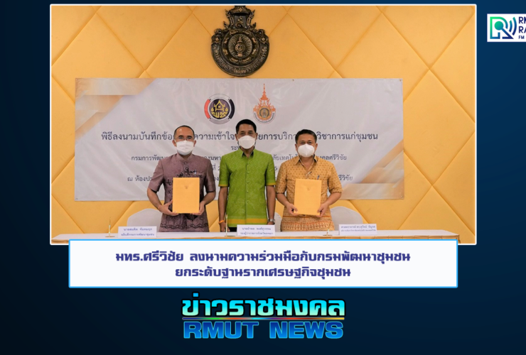 มหาวิทยาลัยเทคโนโลยีราชมงคลศรีวิชัย โดย ศาสตราจารย์ ดร.สุวัจน์ ธัญรส อธิการบดีมหาวิทยาลัยเทคโนโลยีราชมงคลศรีวิชัย บันทึกข้อตกลงความเข้าใจ การบริการทางวิชาการแก่ชุมชน กับกรมการพัฒนาชุมชน กระทรวงมหาดไทย โดย นายสมคิด จันทมฤก อธิบดีกรมการพัฒนาชุมชน โดยมีนายอำพล พงศ์สุวรรณ รองผู้ว่าราชการจังหวัดสงขลา และคณะผู้บริหารทั้งสองหน่วยงานร่วมเป็นสักขีพยาน ณ ห้องประชุมสมิหลา ชั้น 3 อาคารสำนักงานอธิการบดี มหาวิทยาลัยเทคโนโลยีราชมงคลศรีวิชัย จังหวัดสงขลา . สำหรับการลงนามในครั้งนี้ของทั้งสองหน่วยงาน เกิดความตระหนักในการรับผิดต่อสังคมและความสำคัญในการให้บริการทางวิชาการแก่ชุมชน และมีเจตนารมณ์ร่วมกันในการพัฒนาศักยภาพด้านการเรียนรู้ การพัฒนาองค์ความรู้ ด้านการพัฒนาชุมชน การยกระดับเศรษฐกิจของชุมชน ส่งเสริมการบริการวิชาการแก่ชุมชนและท้องถิ่นด้วยฐานวิทยาศาสตร์เทคโนโลยีและทุนทางวัฒนธรรม รวมทั้งเพื่อให้เกิดการบูรณาการทรัพยากร การจัดการหน่วยงานเครือข่าย การบริการทางวิชาการของมหาวิทยาลัยเทคโนโลยีราชมงคลศรีวิชัยและกรมการพัฒนาชุมชน กระทรวงมหาดไทย ในการพัฒนาทรัพยากรมนุษย์ในระดับต่างๆ ให้เชี่ยวชาญทันเหตุการณ์สอดรับกับสถานการณ์ปัจจุบัน เกิดองค์ความรู้ใหม่ ...