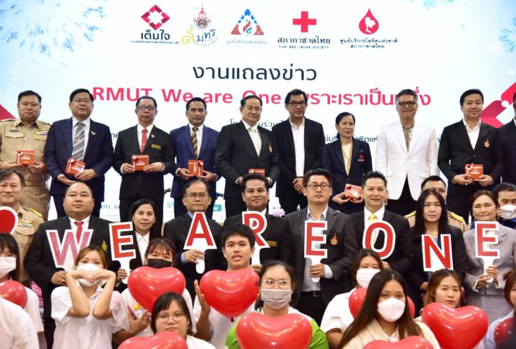 เมื่อวันจันทร์ที่ 2 ตุลาคม พ.ศ 2566 เวลา 13.00 น. กลุ่มมหาวิทยาลัยเทคโนโลยีราชมงคลทั้ง 9 แห่ง ประกอบด้วย มทร.ธัญบุรี มทร.กรุงเทพ มทร.ตะวันออก มทร.พระนคร มทร.รัตนโกสินทร์ มทร.ล้านนา มทร.ศรีวิชัย และ มทร.สุวรรณภูมิ จัดงานแถลงข่าวเปิดตัวแคมเปญ “RMUT We are One เพราะเราเป็นหนึ่ง” เพื่อเข้าร่วมในโครงการเต็มใจ ซึ่งเป็นการประกวดกิจกรรมรณรงค์บริจาคโลหิตในกลุ่มเยาวชนระดับอุดมศึกษา โดยความร่วมมือของศูนย์บริการโลหิตแห่งชาติ สภากาชาดไทย และมูลนิธิดั่งพ่อสอน . โดย รศ.ดร.สมหมาย ผิวสอาด อธิการบดี มทร.ธัญบุรี ในฐานะประธานที่ประชุมคณะกรรมการอธิการบดี มหาวิทยาลัยเทคโนโลยีราชมงคล ...
