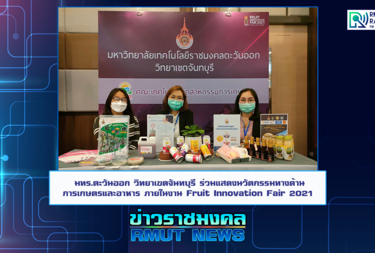 มหาวิทยาลัยเทคโนโลยีราชมงคลตะวันออก วิทยาเขตจันทบุรี ได้รับเกียรติร่วมแสดงนวัตกรรมทางด้านการเกษตรและอาหาร ภายใต้งานสัมมนาและแสดงสินค้านวัตกรรมเกษตรจันทบุรี มหานครผลไม้ Fruit Innovation Fair 2021 ซึ่งเป็นความร่วมมือของหอการค้าจังหวัดจันทบุรีและกลุ่มภาคีเครือข่าย โดยคณะเทคโนโลยีอุตสาหกรรมการเกษตร จัดแสดงนวัตกรรมทางด้านการเกษตร การแปรรูป และ สินค้าเพื่อการเกษตร อาทิ ผลิตภัณฑ์หัวเชื้อไตรโคเดอร์ม่า สรรพคุณรักษาราสีชมพู ,น้ำหมักบำรุงต้น ,เครื่องดื่มน้ำทุเรียน ,น้ำส้มหมักจากเงาะ เป็นต้น โดยมี ผู้ช่วยศาสตราจารย์ ดร. กรรณิการ์ เจริญสุข , ผู้ช่วยศาสตราจารย์สรัลรัตน์ พ่วงบริสุทธิ์ , ดร.สุรีย์พร บุญนา อาจารย์ประจำสาขาวิชาเทคโนโลยีการจัดการและพัฒนาผลิตภัณฑ์ ผศ.วรรณศิริ หิรัญเกิด อาจารย์ประจำสาขาเทคโนโลยีการอาหาร ให้การต้อนรับ นายสุธี ทองแย้ม ...