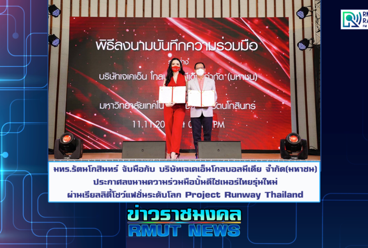 ในวันพฤหัสบดีที่ 11 พฤศจิกายน 2564 มทร.รัตนโกสินทร์ โดยวิทยาลัยผู้ประกอบการสร้างสรรค์นานาชาติรัตนโกสินทร์ (Rattanakosin International College of Creative Entrepreneurship RICE)จัดพิธีลงนามบันทึกความร่วมมือ (MOU)ระหว่าง มหาวิทยาลัยเทคโนโลยีราชมงคลรัตนโกสินทร์ กับ บริษัทเจเคเอ็นโกลบอล มีเดีย จำกัด (มหาชน) . มทร.รัตนโกสินทร์ นำโดย รศ. ดร.อุดมวิทย์ ไชยสกุลเกียรติ รักษาราชการแทนอธิการบดี เเละ บริษัทเจเคเอ็นโกลบอล มีเดีย จำกัด (มหาชน) โดย คุณจักรพงษ์ จักราจุฑาธิบดิ์ ประธานเจ้าหน้าที่บริหารและกรรมการผู้จัดการ ร่วมลงนามบันทึกความร่วมมือ (MOU) ในการเป็นพันธมิตรในการผลิตรายการโปรเจกต์รันเวย์ ไทยแลนด์ ...