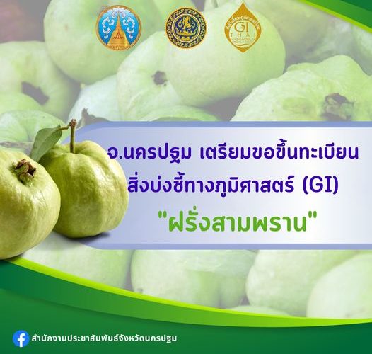 นายพงศ์สุธี สุขศิริ พาณิชย์จังหวัดนครปฐม ได้ประชุมร่วมกับผู้ผลิต ผู้ประกอบการ และหน่วยงานที่เกี่ยวข้อง ในการพิจารณารายละเอียด จัดทำคำขอขึ้นทะเบียนสิ่งบ่งชี้ทางภูมิศาสตร์สินค้า “ฝรั่งสามพราน” ณ ศูนย์การเรียนรู้และขับเคลื่อนของปรัชญาเศรษฐกิจพอเพียงบ้านหัวอ่าวจังหวัดนครปฐม ตำบลบางช้าง อำเภอสามพราน จังหวัดนครปฐม โดยมหาวิทยาลัยเทคโนโลยีราชมงคลธัญบุรี ได้รับมอบหมายจากจังหวัดปทุมธานี ให้ดำเนินโครงการส่งเสริมธุรกิจเกษตรอัจฉริยะกิจกรรมหลักส่งเสริมและพัฒนาสินค้าสิ่งบ่งชี้ทางภูมิศาสตร์ GI กลุ่มจังหวัดภาคกลางปริมณฑล . สำหรับสินค้าสิ่งบ่งชี้ทางภูมิศาสตร์ (GI) เป็นทรัพย์สินทางปัญญาประเภทหนึ่ง เป็นเครื่องหมายที่ใช้กับสินค้าที่มาจากแหล่งผลิตที่เฉพาะเจาะจง ซึ่งคุณภาพหรือชื่อเสียงของสินค้านั้น ๆ เป็นผลมาจากการผลิตในพื้นที่ดังกล่าว GI จึงเปรียบเสมือนเป็นแบรนด์ของท้องถิ่นที่บ่งบอกถึงคุณภาพและแหล่งที่มาของสินค้าประโยชน์ที่ได้รับ เมื่อขึ้นทะเบียนสินค้าชุมชน เป็นสิ่งบ่งชี้ทางภูมิศาสตร์ ได้แก่ 1.คุ้มครองชื่อสินค้าให้เป็นสิทธิเฉพาะของชุมชนที่ขึ้นทะเบียน 2.ดูแลรักษามาตรฐานของสินค้าและรักษาภูมิปัญญาท้องถิ่น 3.เพิ่มมูลค่าของสินค้าและเป็นเครื่องมือการตลาด 4.สร้างความเข้มแข็งให้แก่ชุมชน และเพิ่มความสามัคคีเพื่อพัฒนาท้องถิ่น 5.สนับสนุนการท่องเที่ยวชุมชนผู้ผลิตอย่างยั่งยืน 6.สร้างความเชื่อมั่นในแหล่งที่มาและคุณภาพของตัวสินค้าให้กับผู้ซื้อ 7.ก้าวสู่ระดับสากล ...