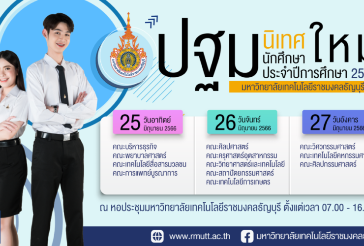 มหาวิทยาลัยเทคโนโลยีราชมงคลธัญบุรี แจ้งกำหนดจัดปฐมนิเทศนักศึกษาใหม่ ประจำปีการศึกษา 2566 “Student Life RMUTT 2023” เพื่อต้อนรับนักศึกษาใหม่เข้าสู่รั้ว มทร.ธัญบุรี และบันทึกลงสมุดกิจกรรมหมวดวิชาการ เพื่อให้นักศึกษาใหม่ทุกคนได้ทราบระเบียบข้อบังคับ หลักสูตร ระบบการเรียนการสอน แนวทางการปรับตัวให้เข้ากับสิ่งแวดล้อมของมหาวิทยาลัย การจัดบริการสวัสดิการแก่นักศึกษาของหน่วยงานต่างๆ และเพื่อสร้างสรรค์คุณธรรมจริยธรรมในหมู่นักศึกษา ให้นักศึกษามีความรัก ความภาคภูมิใจ รวมทั้งสร้างความสัมพันธ์ระหว่างนักศึกษาด้วยกัน และระหว่างนักศึกษากับอาจารย์ อันจะส่งผลให้นักศึกษามีความพร้อมในการใช้ชีวิตในรั้วมหาวิทยาลัยอย่างมีความสุข โดยกำหนดจัดปฐมนิเทศนักศึกษาจำนวน 3 รุ่น รุ่นละ 1 วัน ดังนี้ . รุ่นที่ 1 วันอาทิตย์ที่ 25 มิถุนายน 2566 07.00 – 16.30 น. ...