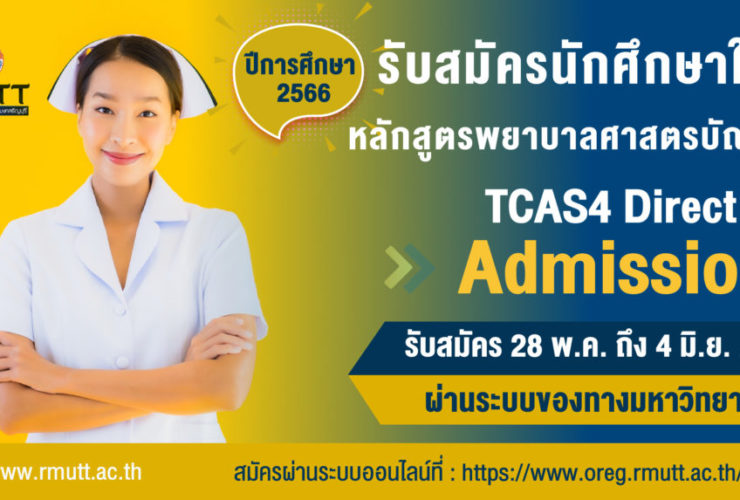 คณะพยาบาลศาสตร์ มหาวิทยาลัยเทคโนโลยีราชมงคลธัญบุรี (มทร.ธัญบุรี) เปิดรับสมัครนักศึกษา TCAS4 Direct Admission ปีการศึกษา 2566 หลักสูตรพยาบาลศาสตรบัณฑิต ระหว่างวันที่ 28 พฤษภาคม ถึง 4 มิถุนายน 2566 ผ่านระบบออนไลน์ที่ www.oreg.rmutt.ac.th/Apply คุณสมบัติผู้สมัคร กำลังศึกษาหรือสำเร็จการศึกษาระดับชั้นมัธยมศึกษาปีที่ 6 ทุกแผนการเรียน จากโรงเรียนทั่วประเทศ (ไม่รับ กศน.หรือเทียบเท่า) ส่วนสูงไม่น้อยกว่า 150 เซนติเมตร น้ำหนักไม่ต่ำกว่า 40 กิโลกรัม และไม่เกิน 80 กิโลกรัม ค่าดัชนีมวลกาย ต้องไม่ต่ำกว่า 17 และไม่สูงกว่า 30 ...
