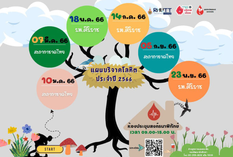 กองพัฒนานักศึกษา มทร.ธัญบุรี แจ้งว่า มหาวิทยาลัยเทคโนโลยีราชมงคลธัญบุรี หรือ มทร.ธัญบุรี ร่วมกับ ภาควิชาเวชศาสตร์การธนาคารเลือด คณะแพทยศาสตร์ศิริราชพยาบาล มหาวิทยาลัยมหิดล จัดหน่วยบริการเคลื่อนที่ เพื่อขอรับบริจาคโลหิตจากนักศึกษา บุคลากร มทร.ธัญบุรี และประชาชนที่สนใจ ในวันพฤหัสบดีที่ 18 พฤษภาคม 2566 ระหว่างเวลา 10.00 – 14.00 น. ณ ห้องประชุมสงค์ธนาพิทักษ์ อาคารเฉลิมพระเกียรติ 48 พระชันษา สมเด็จพระเทพรัตนราชสุดาฯ สยามบรมราชกุมารี มทร.ธัญบุรี คลองหก จ.ปทุมธานี เพื่อช่วยเหลือผู้ป่วยที่อยู่ในภาวะวิกฤต จำเป็นต้องใช้เลือดในการรักษาได้อย่างต่อเนื่อง สอบถามเพิ่มเติมได้ที่ กองพัฒนานักศึกษา มทร.ธัญบุรี 0-2549-4010 ...