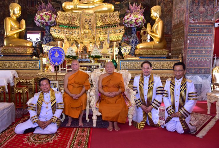 นายวีระศักดิ์ วงษ์สมบัติ นายกสภามหาวิทยาลัยเทคโนโลยีราชมงคลธัญบุรี กรรมการสภามหาวิทยาลัย รศ.ดร.สมหมาย ผิวสอาด อธิการบดีมหาวิทยาลัยเทคโนโลยีราชมงคลธัญบุรี พร้อมคณะผู้บริหาร ถวายปริญญาสถาปัตยกรรมศาสตร ดุษฎีบัณฑิตกิตติมศักดิ์ (สถาปัตยกรรม) แด่ พระพรหมบัณฑิต ศาสตราจารย์ ราชบัณฑิตกิตติมศักดิ์ กรรมการมหาเถรสมาคม เจ้าอาวาสวัดประยุรวงศาวาสวรวิหาร ณ พระอุโบสถ วัดประยุรวงศาวาสวรวิหาร กรุงเทพมหานคร . เรียบเรียงโดย อาทิตยา ปักกะทานัง รายงานโดย ดาริสา ตระกูลเง็ก ...