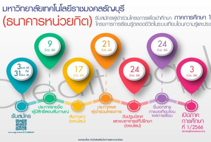 รศ.ดร.สมหมาย ผิวสอาด อธิการบดีมหาวิทยาลัยเทคโนโลยีราชมงคลธัญบุรี เปิดเผยว่า มทร.ธัญบุรี ได้จัดโครงการการเรียนรู้ตลอดชีวิตในระบบเทียบโอนความรู้และประสบการณ์ (ธนาคารหน่วยกิต : CREDITS BANK) เพื่อเข้าศึกษาในหลักสูตรระดับปริญญาตรี โดยดำเนินโครงการนี้มาแล้ว 4 ปี มีผู้เข้าร่วมโครงการแล้ว 263 คน ในปีการศึกษา 2565 มีผู้สนใจเข้าเรียนทั้งสิ้น 115 คน ใน 17 หลักสูตรและจำนวนหลักสูตรที่เปิดสอนในปีการศึกษา 2566 มี 37 หลักสูตร โครงการนี้ เป็นการเปิดโอกาสให้ประชาชน ผู้มีประสบการณ์ทุกช่วงวัย ไม่จำกัดวุฒิการศึกษา เข้าศึกษาในระดับปริญญาตรี โดยการเรียนรูปแบบดังกล่าวเป็นการจัดการศึกษาที่มีความยืดหยุ่นเหมาะสบกับบริบทของผู้เรียน เป็นการเรียนควบคู่กับการทำงาน ไม่จำกัดระยะเวลาในการสะสมหน่วยกิตและเวลาเรียน เป็นการช่วยลดความเหลื่อมล้ำด้านการศึกษา และยังเป็นส่งเสริม พัฒนาทักษะอาชีพและสร้างทักษะใหม่ที่จำเป็นในการทำงาน ...