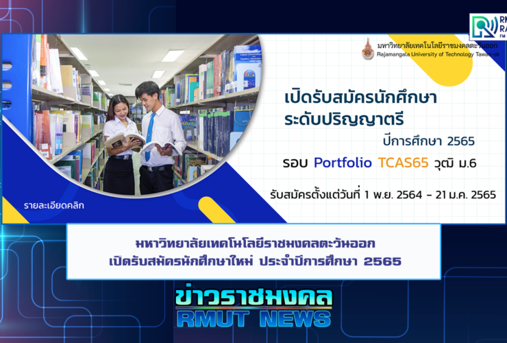 มหาวิทยาลัยเทคโนโลยีราชมงคลตะวันออก เปิดรับสมัครนักศึกษาใหม่ ประจำปีการศึกษา 2565 รอบ โควตา วุฒิ ปวช./ปวส. รับสมัครระหว่างวันที่ 1 ตุลาคม 2564 -30 พฤศจิกายน 2564 รอบที่1 Portfoilo วุฒิ ม.6 รับสมัครระหว่างวันที่ 1 พฤศจิกายน 2564 – 21 มกราคม 2565 . สนใจสมัครได้ที่ www.rmutto.ac.th หรือ Facebook Fanpage : มหาวิทยาลัยเทคโนโลยีราชมงคลตะวันออก หรือติดต่อสอบถามข้อมูลได้ที่สำนักส่งเสริมวิชาการและงานทะเบียน โทร.081-982-1881 . ปุณณภา เหลื่อมล้ำ ...