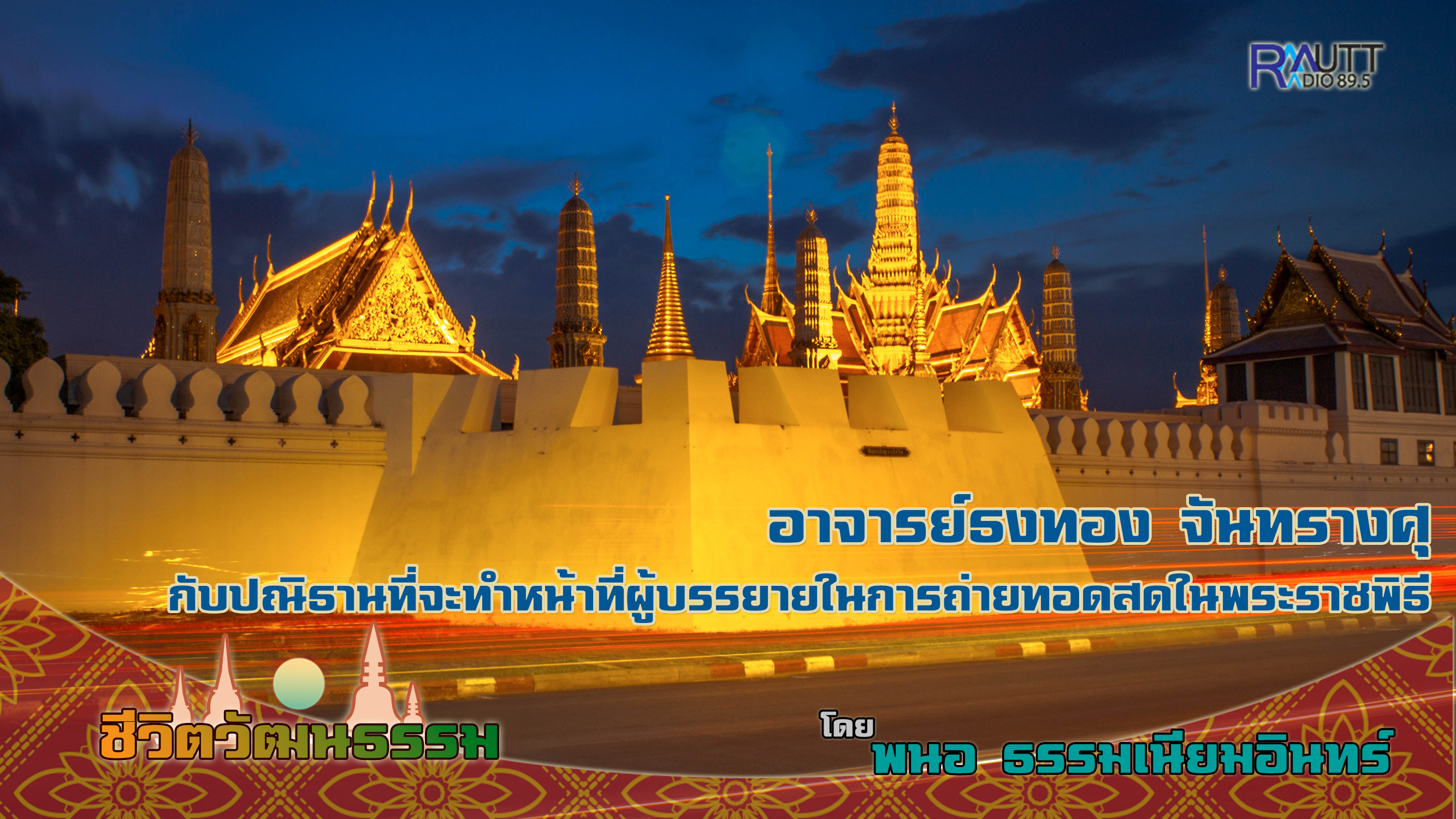 https://www.facebook.com/RMUTTRadio/videos/2383544285296188/ #ชีวิตวัฒนธรรม l ๕ ธันวา วันคล้ายวันพระราชสมภพรัชกาลที่ ๙ วันชาติ วันพ่อแห่งชาติ…ทำดีตามรอยเบื้องพระยุคลบาทด้วยสำนึกในพระมหากรุณาธิคุณ และอาจารย์ธงทอง จันทรางศุ กับ ปณิธานที่จะทำหน้าที่ผู้บรรยายในการถ่ายทอดสดในพระราชพิธีต่าง . โดย อาจารย์พนอ ธรรมเนียมอินทร์ . ออกอากาศ[7 ธันวาคม 2562 ] ...