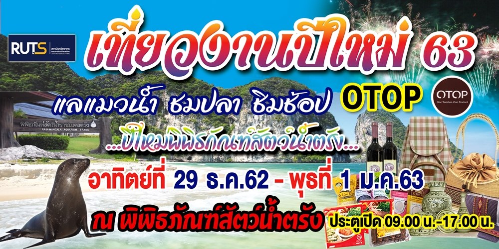 https://www.facebook.com/RMUTTRadio/videos/2823244344373601/ นางกันต์กนิษฐ์ แสนพานิช นักประชาสัมพันธ์สถาบันทรัพยากรธรรมชาติและสิ่งแวดล้อม ราชมงคลศรีวิชัย ตรัง . สถาบันทรัพยากรธรรมชาติและสิ่งแวดล้อม จัดงานส่งท้ายปีเก่าต้อนรับปีใหม่ “แลแมวน้ำ ชมปลา ชิมช้อป OTOP ปีใหม่พิพิธภัณฑ์สัตว์น้ำตรัง” ณ พิพิธภัณฑ์สัตว์น้ำราชมงคลตรัง ในระหว่างวันที่ 29 ธันวาคม 2562 – 1 มกราคม 2563 ภายในงานมีการจัดแสดงแมวน้ำ การจัดแสดงสัตว์น้ำทั้งในประเทศและต่างประเทศ การจัดแสดงสัตว์แปลก และอื่นๆ อีกมากมาย ปีใหม่ปีนี้จะแตกต่างกับปีใหม่ทุกปีที่ผ่านมาเพราะมีการจัดพื้นที่ให้สินค้า OTOP หรือกลุ่มวิสาหกิจทั้งในจังหวัดตรังและต่างจังหวัดร่วมออกบูธจำหน่ายสินค้าเพื่อเป็นการส่งเสริมการตลาด การกระตุ้นการจัดจำหน่ายสินค้าให้แก่สินค้า OTOP ให้เข้าถึงกลุ่มนักท่องเที่ยว อีกทั้งเพื่อเป็นการมอบความสุข สร้างสีสัน และดึงดูดนักท่องเที่ยวให้มาท่องเที่ยวที่พิพิธภัณฑ์สัตว์น้ำฯ . ทั้งนี้ ...