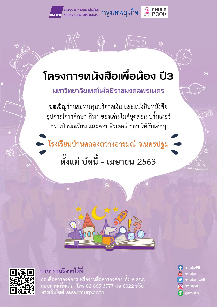 ‘ราชมงคลพระนคร’ ชวนร่วมช้อปหนังสือส่งต่อให้น้องอ่านปี 3 .