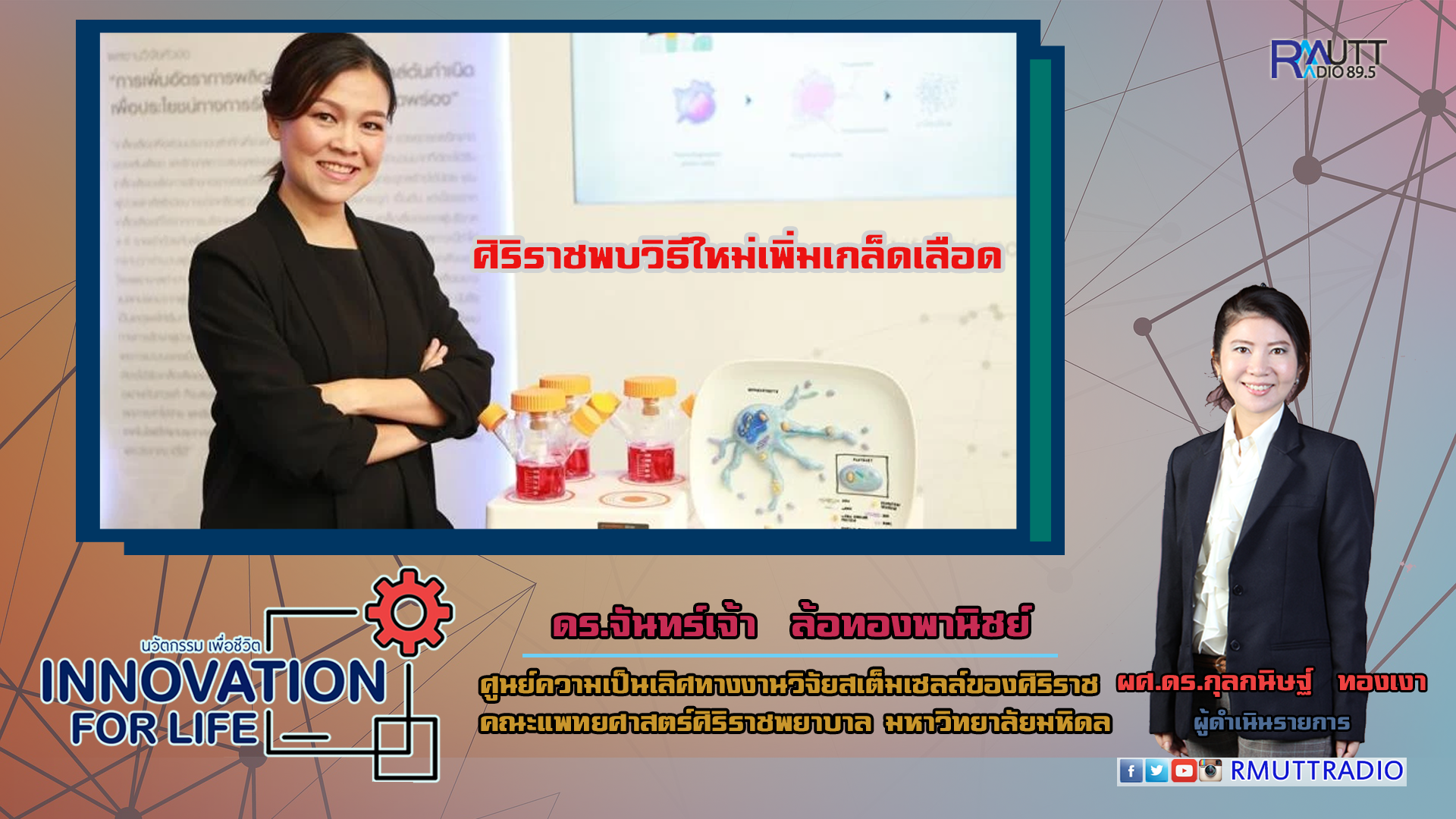 Innovationforlife l คณะแพทยศาสตร์ศิริราชพยาบาล มหาวิทยาลัยมหิดล ได้ค้นพบกระบวนการวิจัยใหม่ “เพิ่มเกล็ดเลือด”
